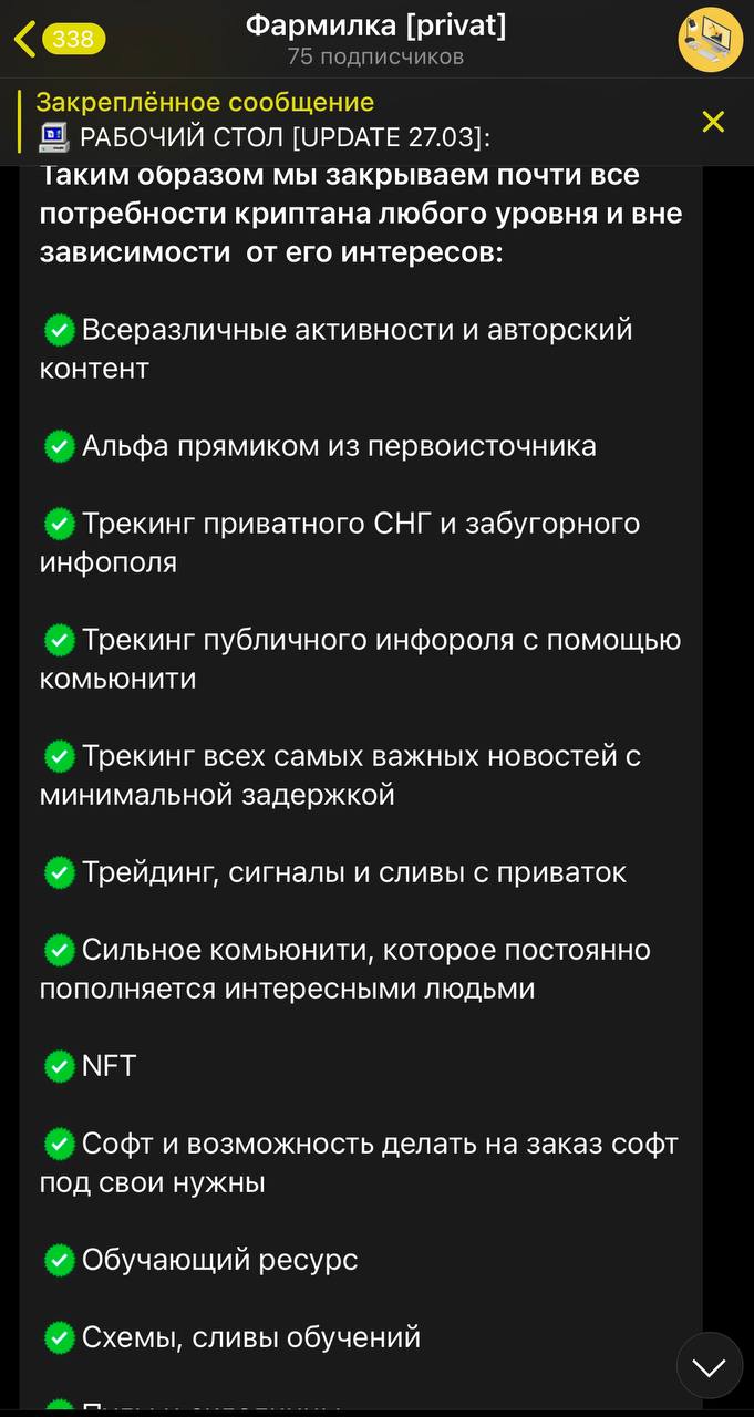 🟡Также супер много времени сжирает билд Фармилки (ака приватка).. Это просто пиздец, что за зверь получится на выходе.. Полноценный многофункциональный инструмент для криптана с любыми потребностями и разного уровня прокачки. Будь ты новичок или супер перец. После последней полной презентации добавилось очень много новых инструментов. Я считаю, что с появлением Фармилки, мой долг заботиться о том, чтобы у участников Фармилки было все необходимое для заработка в первую очередь. Уже потом личные активности, мувы.