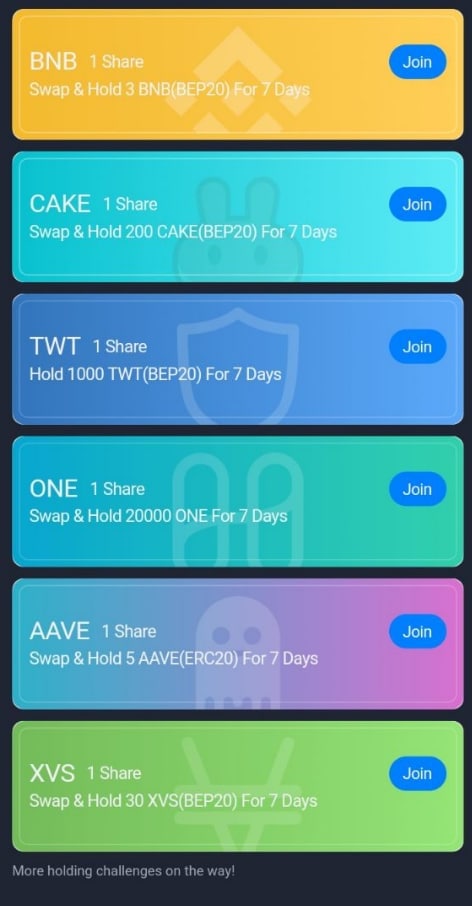 Вижу, что очень малое количество из вас выполнило хотяб одно задание на свап и холд (или просто холд в случае с TWT). Это печалит меня не только из-за рефки. После раздачи токенов, пройдёт время, начнутся торги, и опять многие будут негодовать в беседе о том, что упустили прибыль...