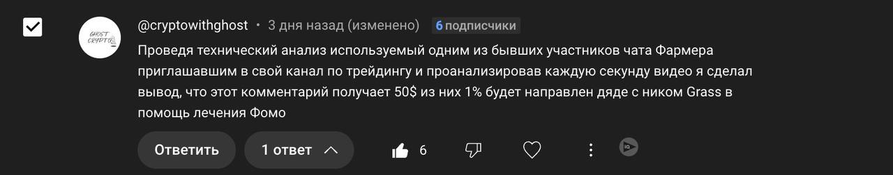 Отпишись в чатике или в лс (@farmerdaddy) с пруфами, что это твой комент!
