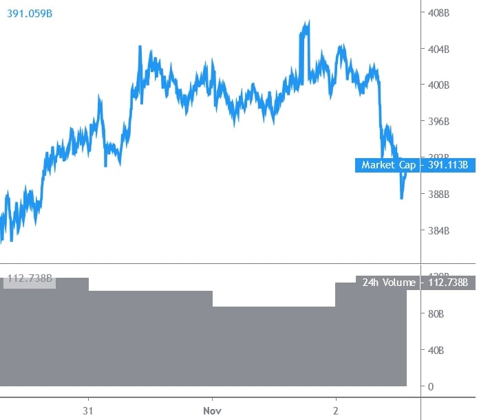 Ethereum price failed to gain traction above the USD 400 resistance and started a fresh decline below USD 395. ETH even broke the USD 392 support and tested the USD 382 level. The next major support is near USD 378, below which the price could revisit the USD 372 support.