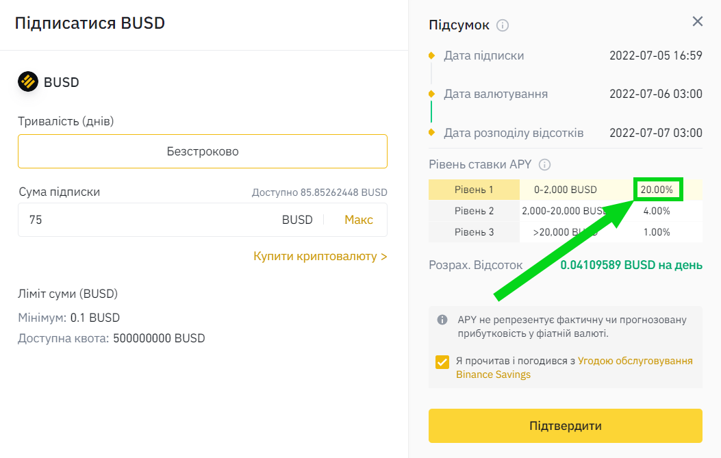 Користувачі, які ніколи не підписувалися на продукти заощаджень до проведення промо-акції, можуть отримати подвійний APY на безстрокові заощадження BUSD протягом періоду промо-акції.