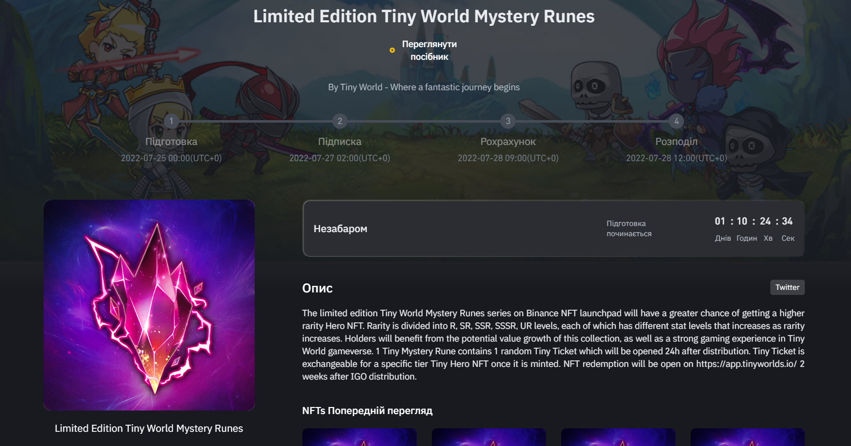 🧩 IGO гри «Tiny World Mystery Runes» на Binance