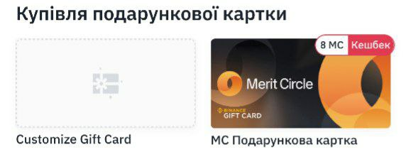 ▪️Потрібно зайти у розділ "Подарункова картка" і купити подарункову картку MC (має бути позначка "8 MC Кешбек")
