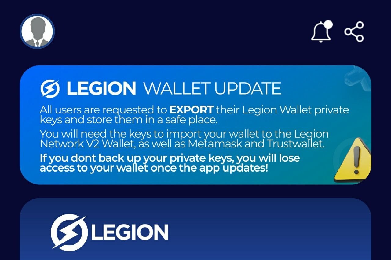 В Legion Network планується перехід на нову версію гаманця і тому потрібно зараз зберегти свій ключ доступу (це зробити доволі просто і швидко).