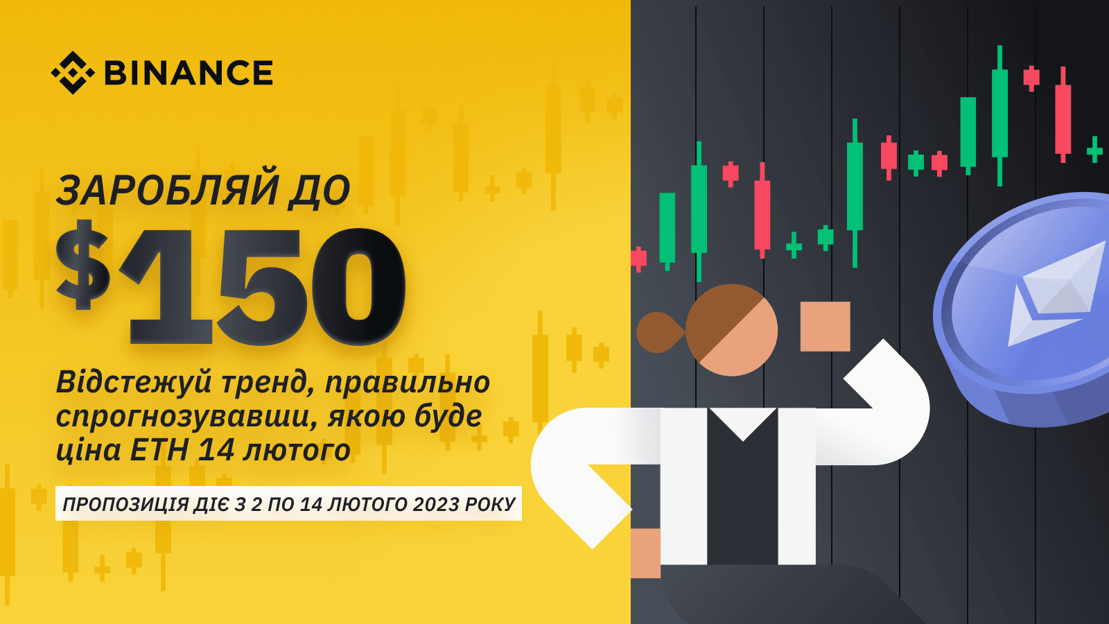 ▪️Спрогнозуй курс ETH на 14.02.23 10:00 (за Києвом) та напиши свій прогноз у коментарях в Телеграм каналі