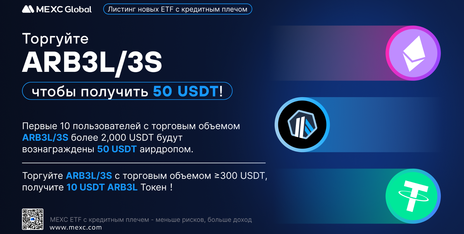 🔹До 29.03 17:00 потрібно зробити обсяг у парах ARB3L/USDT або ARB3S/USDT від 300$ (купити-продати) = отримуємо 10 USDT на спот.