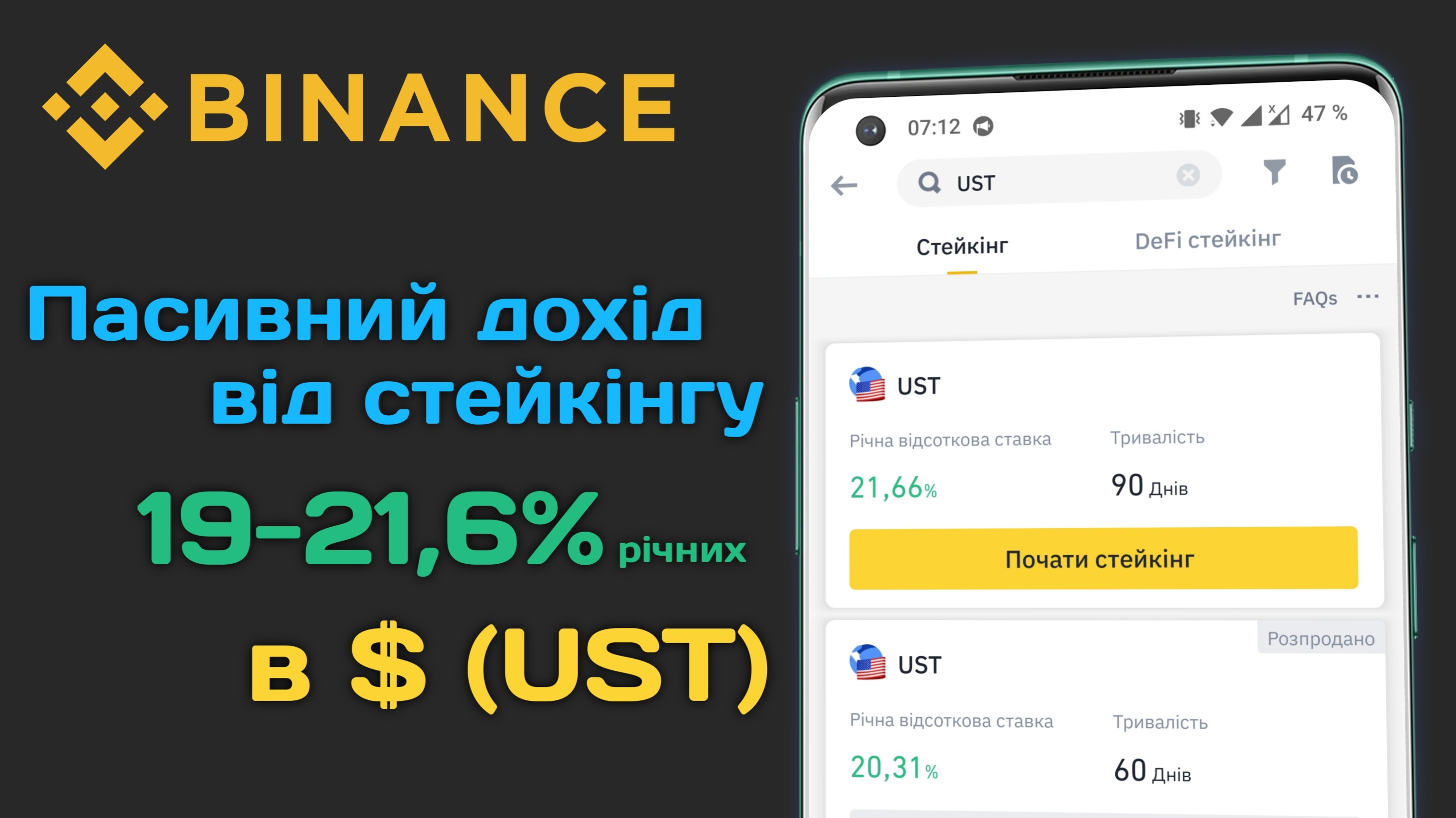 Під минулим відео про інвестиції в криптовалюті ви писали про стейкінг на Binance, тому вирішив записати невеличку інструкцію як "застейкати" стейблкоін $UST і отримувати 19-21,6% річних.