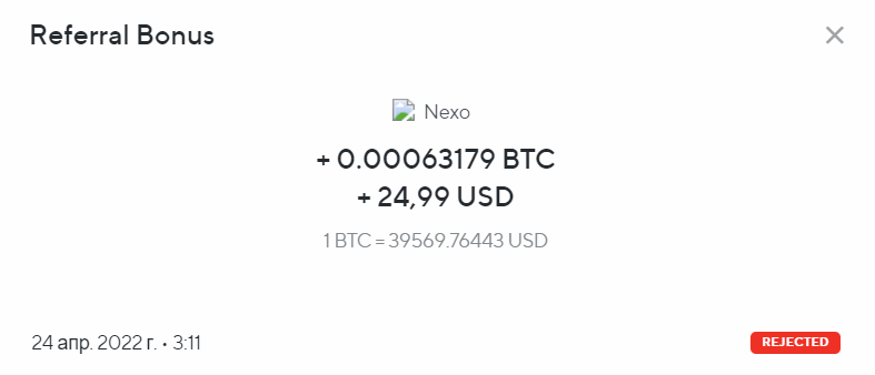 💬 Бонус від Nexo цікавий тим, що його виплачують в біткоіні, по курсу який був на момент виконання умов. Тобто якщо зараз $BTC по 30 тис, то вам нарахують $25 по курсу 30 тис, а якщо він через місяць виросте, то ви отримаєте навіть більше, якщо ви відразу продасте $BTC, звісно це працює і в зворотньому випадку. Я його не продаю, а краще почекаю росту.