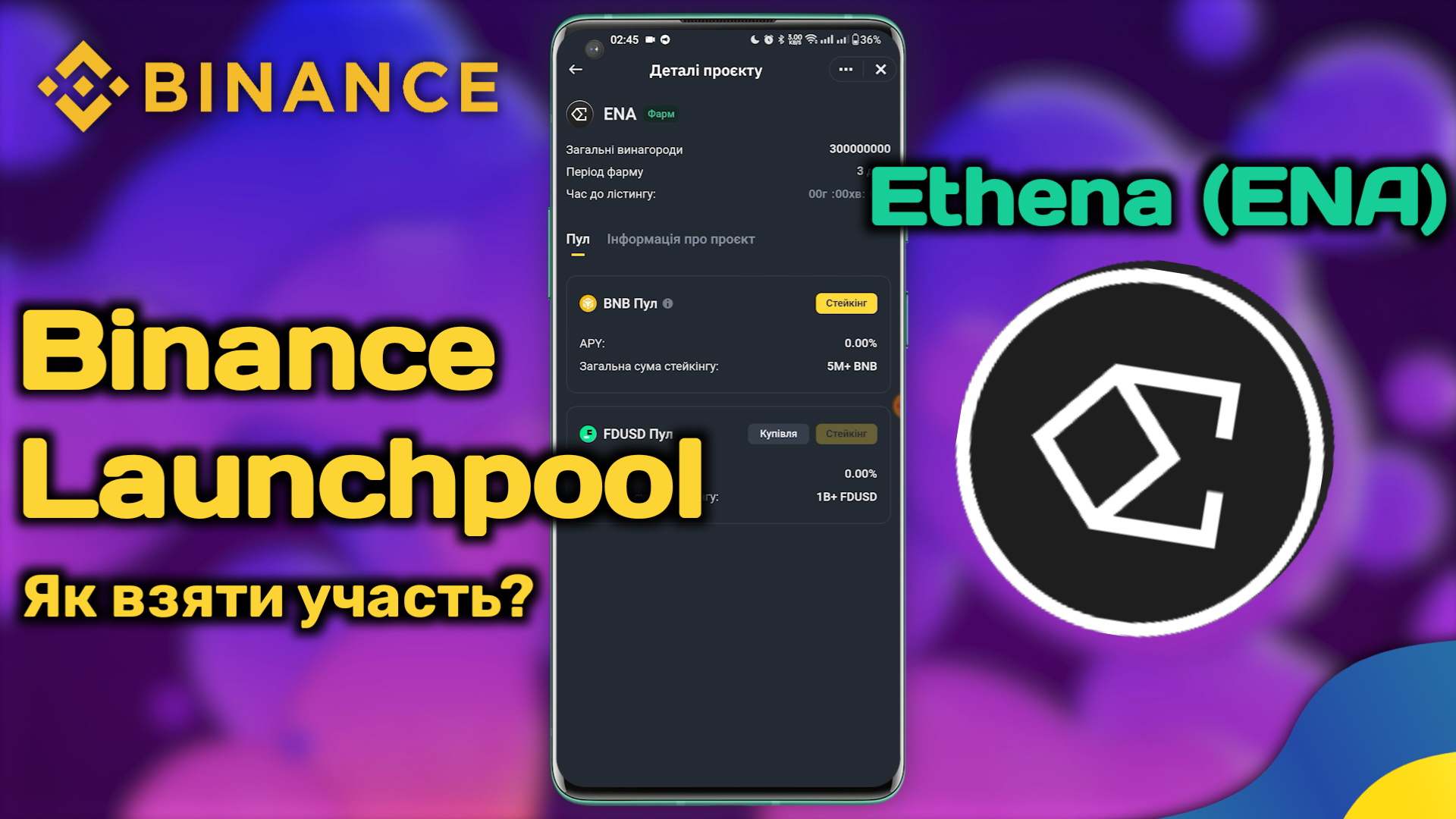 🟡 Binance Launchpool | Як взяти участь та отримати токени проєкту Ethena (ENA)?