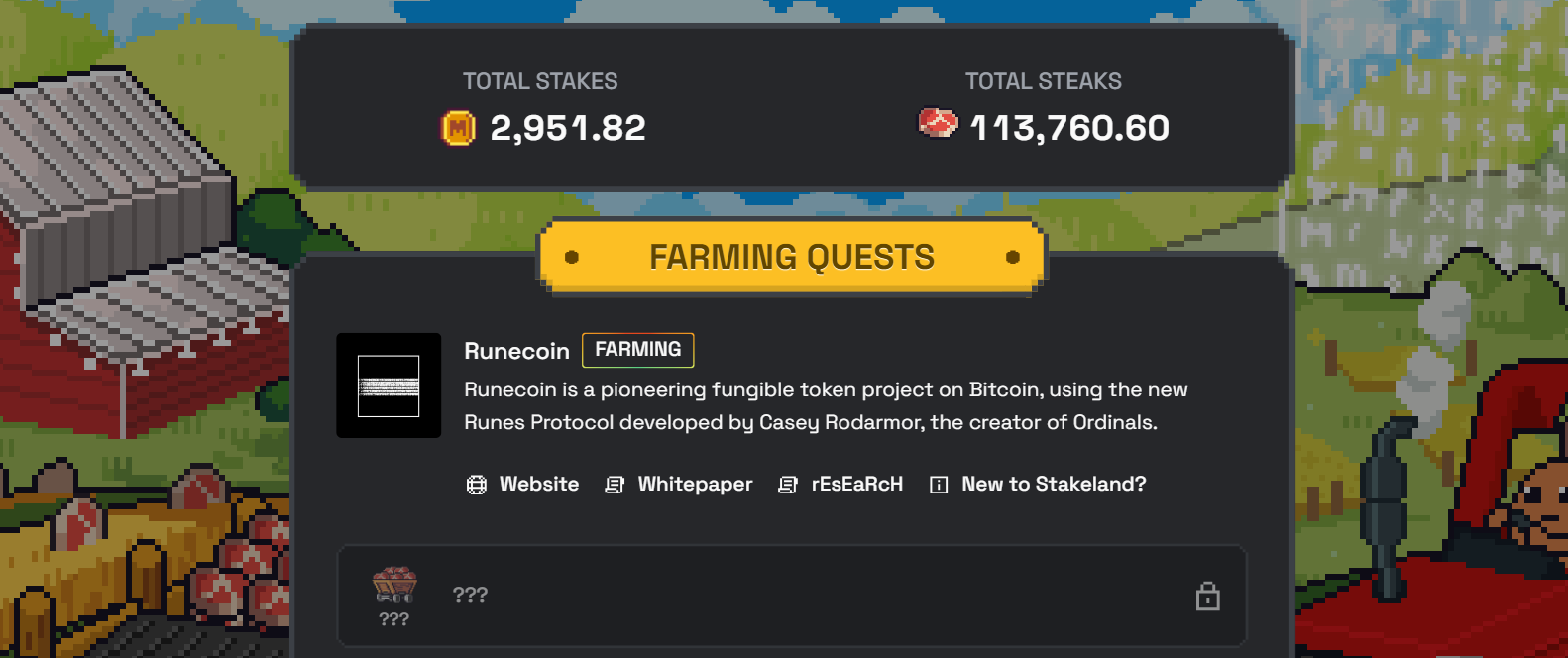 ⛏ Перший проєкт, який ми можете фармити на STAKELAND – це Runecoin (якісь руни, якась двіжуха з BTC🙈)