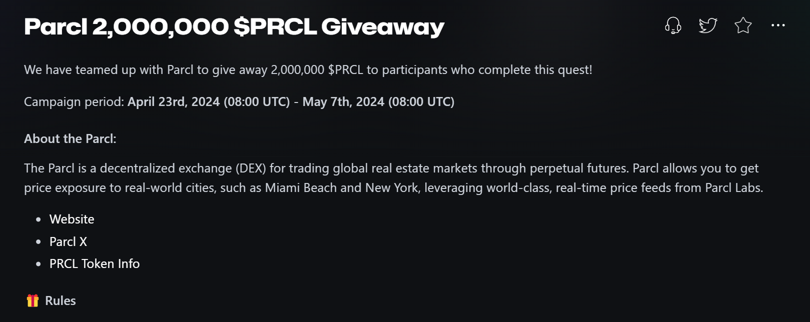 💬 OKX та Parcl проводять розіграш, в якому перші 30 000 учасників, які виконали умови отримають по 67 токенів PRCL (зараз це 47$).