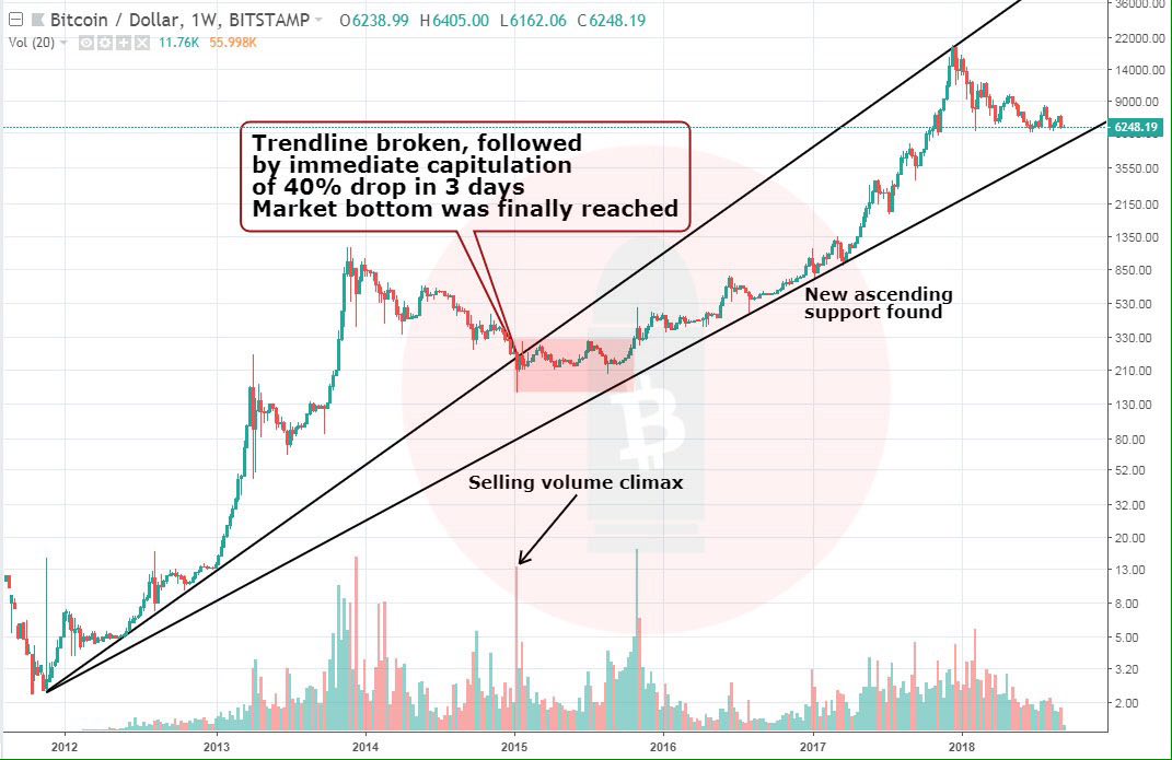 History suggests we might not see capitulation like we did during the infamous 2014-2015 bear market until price gets closer to 5k.
