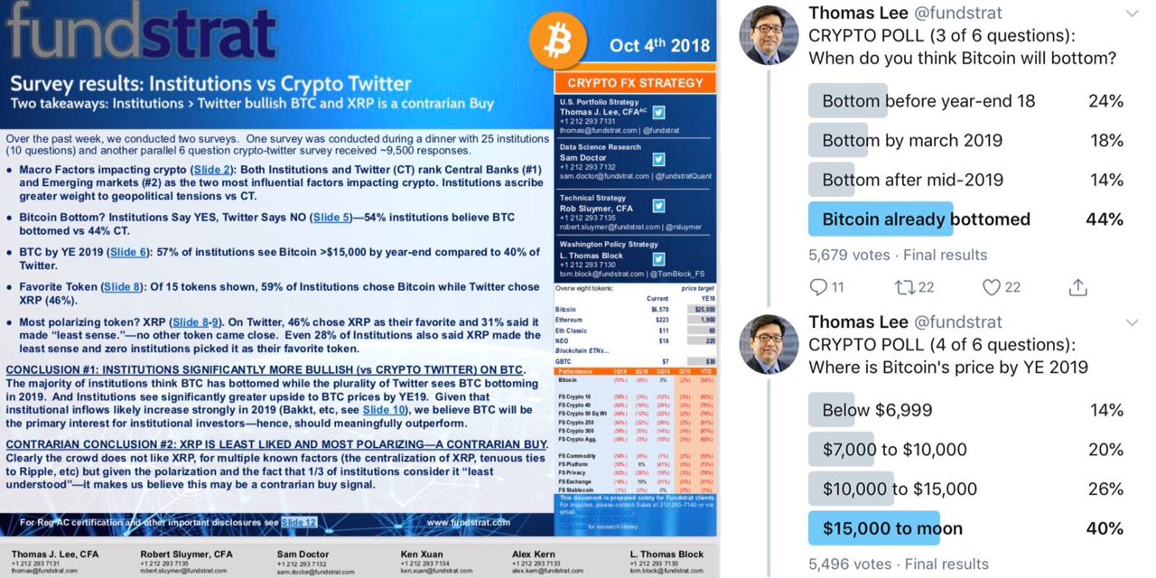 Survey Says: Institutions are bullish and that likely Bitcoin bottom is in. Remarkably that Institutions are more bullish than the crowd.