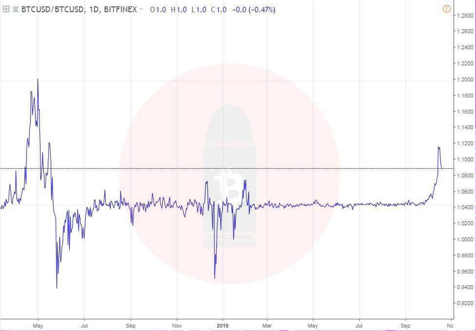 [ On the chart: Bitfinex btcusd / Bitstamp btcusd ]