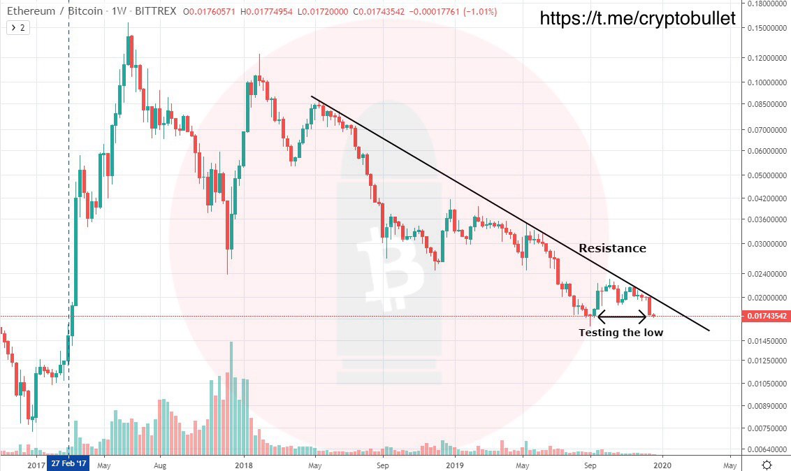 Dec. 18, 2019 - Bitcoin creates a lowest low after topping out at 13880 in June.