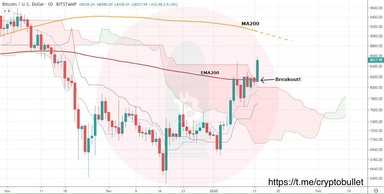 Resistance is broken, however we need to wait for the daily close, but as we mentioned yesterday, MA200 (9k region) is the ultimate target.