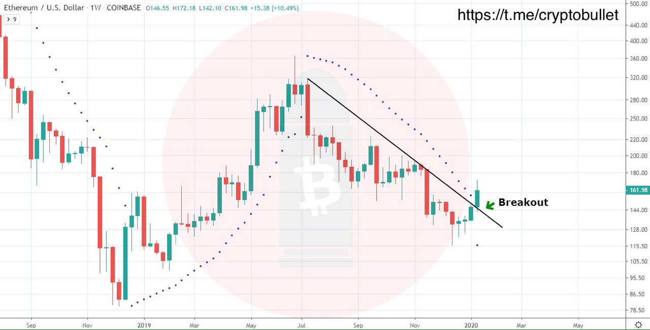 Last week closed pretty bullish, because we managed to close above the downward channel resistance, MA20 & EMA21. Right now this cluster can act as a support and going below it would be dangerous for the bulls.