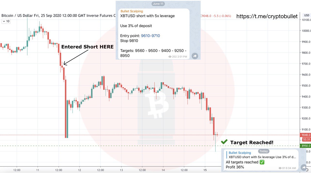On June 11th in our Bullet Scalping we gave a signal to short Bitcoin with 5x leverage