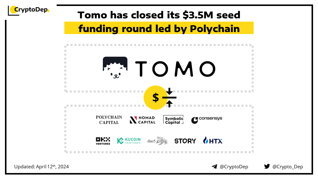 SocialFi app Tomo has raised $3.5M in a seed funding round led by Polychain Capital, with participation from Consensys, Symbolic Capital, OKX Ventures, Nomad Capital, dao5, KuCoin Ventures, HTX Ventures, and Story Protocol. The platform also unveiled a new TomoID wallet feature and a planned revamp of its points rewards system.