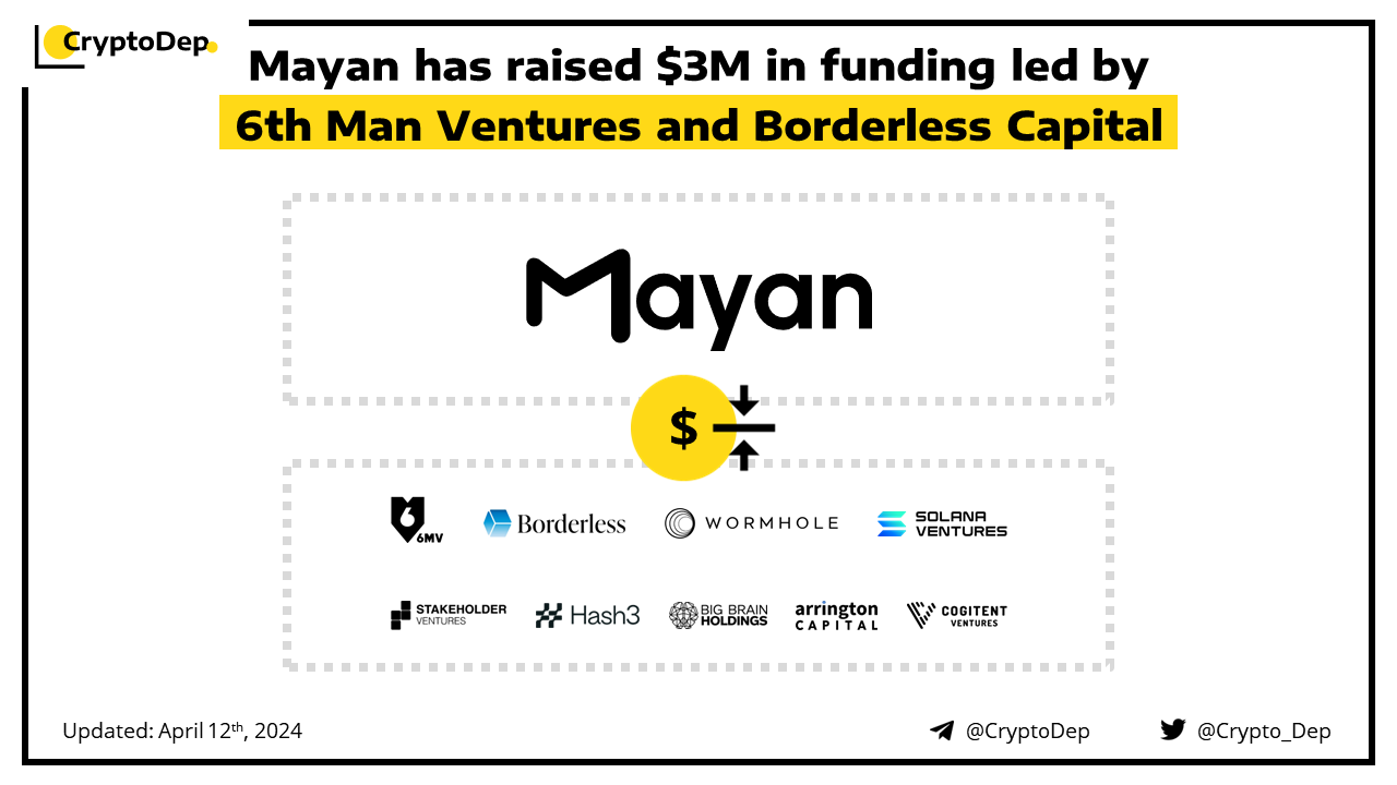 Mayan, a cross-chain auction protocol, closes a $3M funding round led by 6MV and Borderless Capital. Among other investors are Solana Ventures, Hash3, Big Brain Holdings, Arrington Capital, Cogitent Ventures, Stakeholder, Wormhole Cross-Chain Ecosystem Fund, Syndicate by Boogle, Anatoly Yakovenko, and Saeed Badreg. Powered by Wormhole message passing, Mayan seamlessly connects Solana, Ethereum, and major EMV-compatible chains such as BSC, Polygon, Optimism, Avalanche, and Arbitrum.