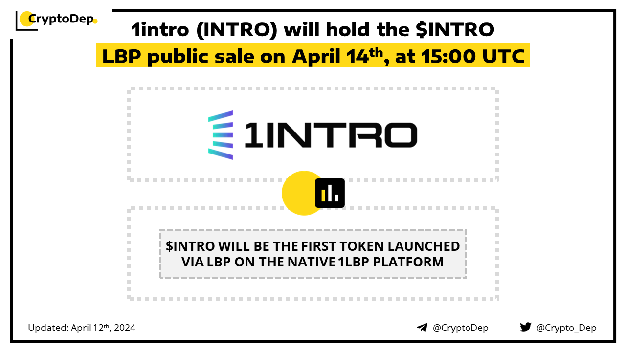 ββ1intro (INTRO) will hold the $INTRO LBP public sale on April 14th, at 15:00 UTC