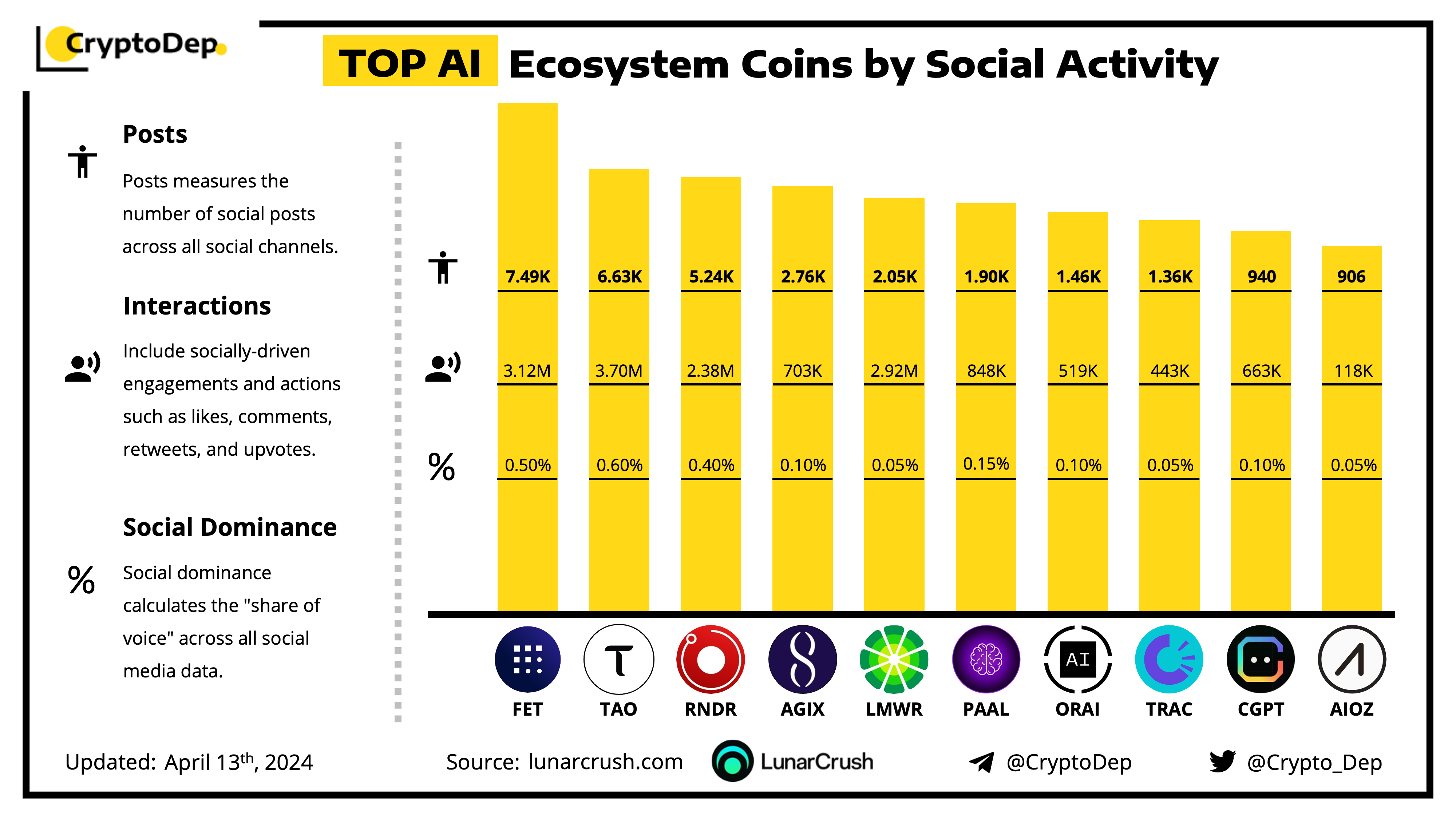 Interactions include socially-driven engagements and actions such as likes, comments, retweets, and upvotes.