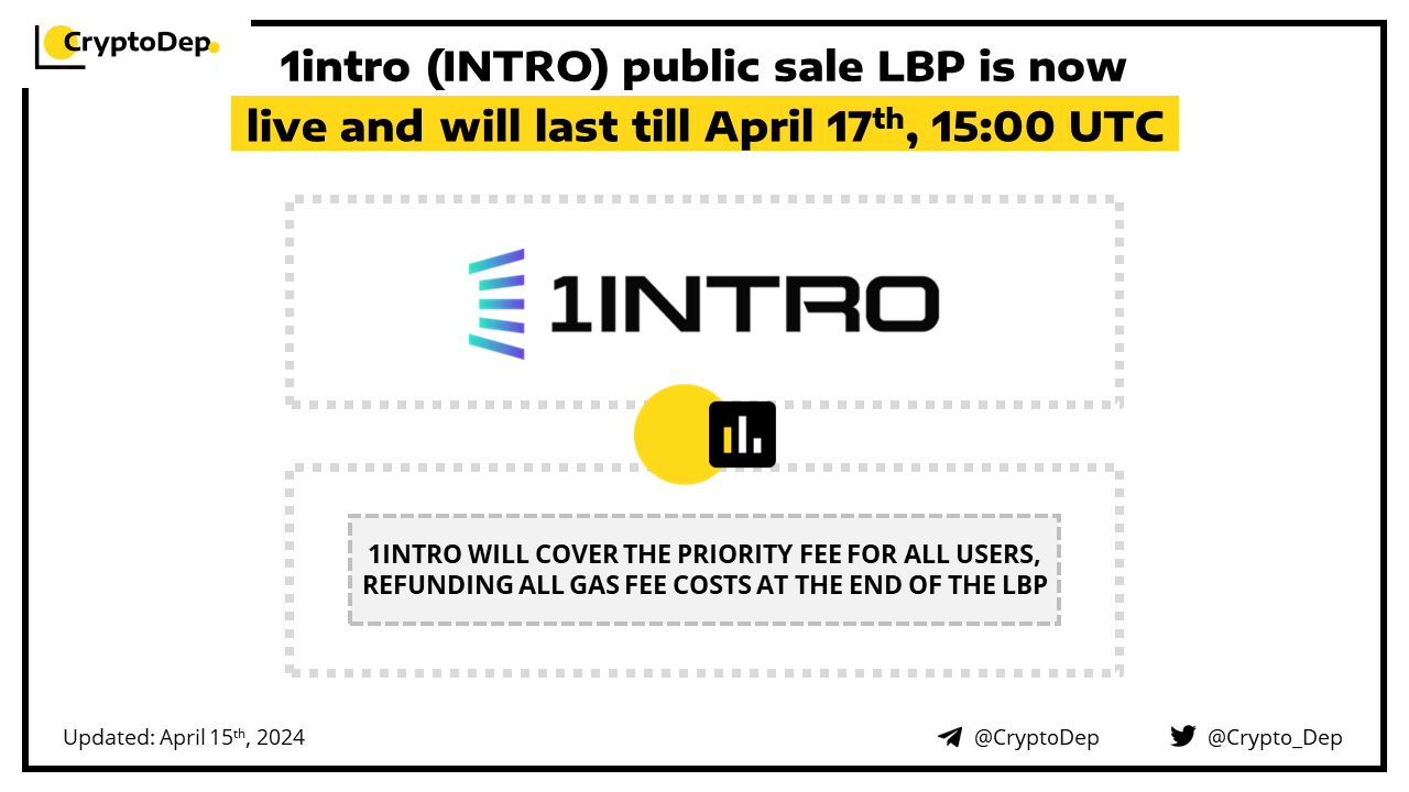 1intro has kicked off the $INTRO public sale LBP and will be running the event for 72 hours, till April 17th, 15:00 UTC. An LBP is a variation of a Dutch auction where the asking price starts high and decreases as the auction goes on. Users can also refer someone to LBP using their referral link to earn 100% of the Swap Fee, which is 2% of the total transaction. Moreover, 1intro will cover the priority fee for all users, refunding all gas fee costs at the end of the LBP. 1INTRO is the all-in-one Liquidity Nexus on Solana powered by AI.