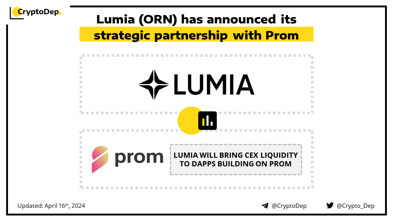 Lumia joins forces with Prom, a developer of the modular ZkEVM Layer 2 that enables interoperability across various chains. Under this integration, the projects will work together to bring CEX liquidity from Binance, OKX, and others, to dApps building on Prom. Lumia is a robust liquidity infrastructure protocol interconnecting Layer 1βs and Layer 2βs with boundless liquidity from CEXs and DEXs.
