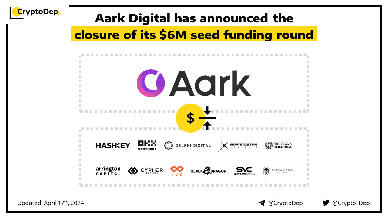 Aark Digital raises $6M in seed funding from HashKey Capital, Arrington Capital, Cypher Capital, Morningstar Ventures, IVC, Metavest, CSP DAO, and Apollo Crypto among others. This follows its Pre-Seed in Q2 2023, led by Delphi Digital, with participation from OKX Ventures and Big Brain Holdings. Earlier in March, the protocol partnered with Pendle to enable PT eETH holders to earn multi-rewards. Aark Digital is the Leverage Everything Perpetual DEX for professional traders/LPs on Arbitrum.