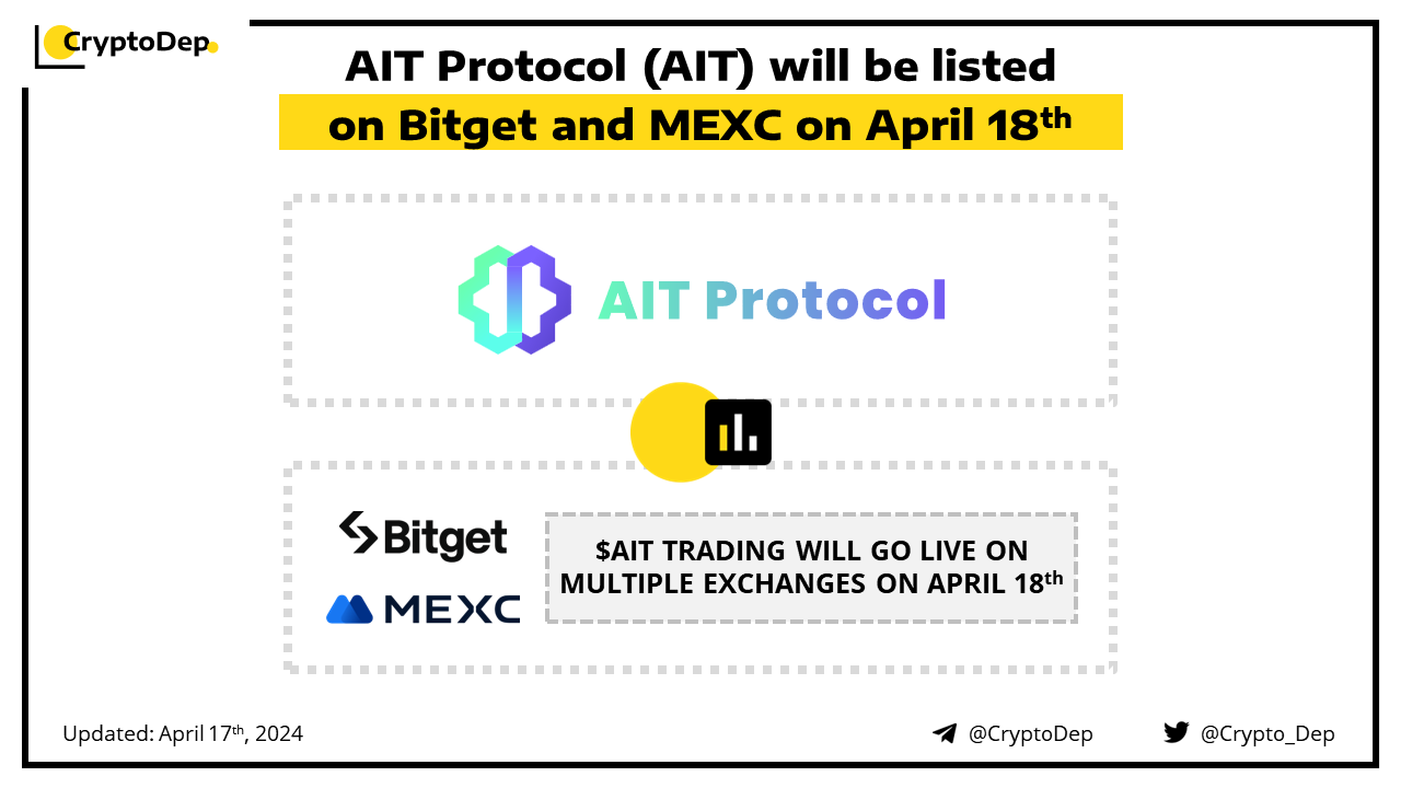โโAIT Protocol (AIT) will be listed on Bitget and MEXC on April 18th
