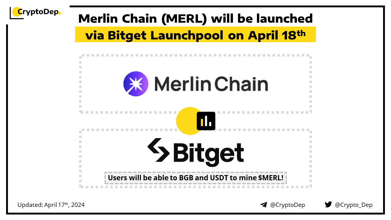 Merlin Chain (MERL) will be launched via Bitget Launchpool on April 18th