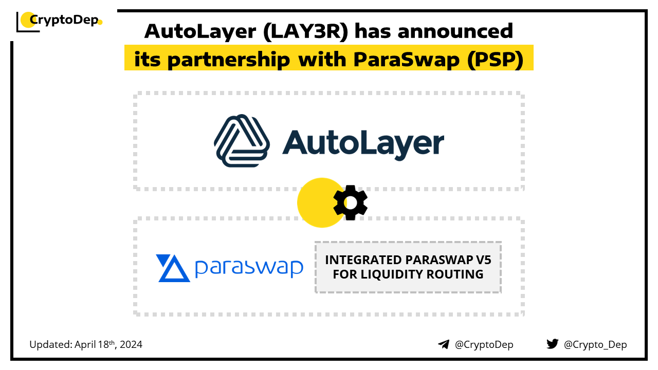 AutoLayer (LAY3R) has announced its partnership with ParaSwap (PSP)