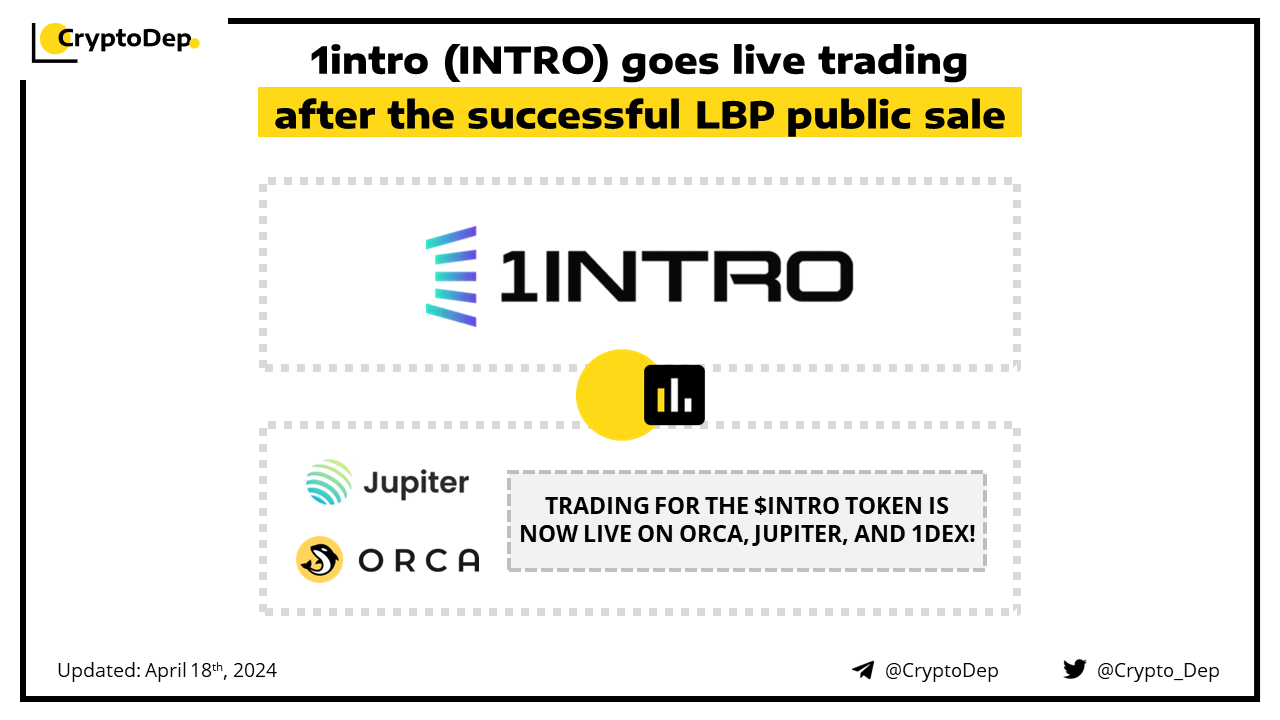 Trading for the $INTRO token is now live on Orca, Jupiter, and 1DEX! The project has successfully conducted its LBP public sale on its platform, raising 90.6K $SOL (~$11.7M). 1INTRO gives projects the ability to raise capital from retail investors and the community fairly and transparently with retail protection mechanisms enabled.