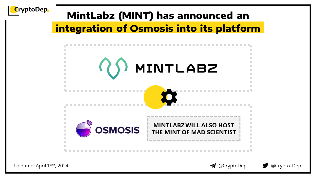 MintLabz (MINT) has announced an integration of Osmosis into its platform