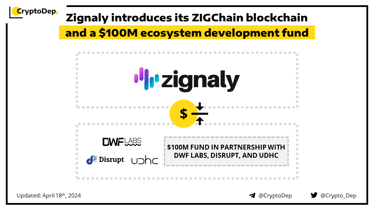 Zignaly announces the launch of the ZIGChain layer-1 blockchain on Cosmos and a $100M ecosystem development fund. Established in partnership with DWF Labs, Disrupt, and UDHC, the fund will be focused on fueling innovation on ZIGChain. Zignaly acts as a crypto fund manager that allows users to copy trades from professionals.