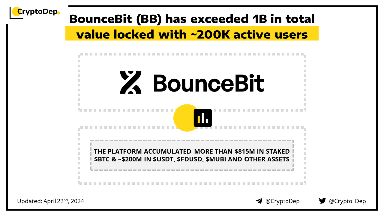 ββBounceBit (BB) has exceeded 1B in total value locked with ~200K active users