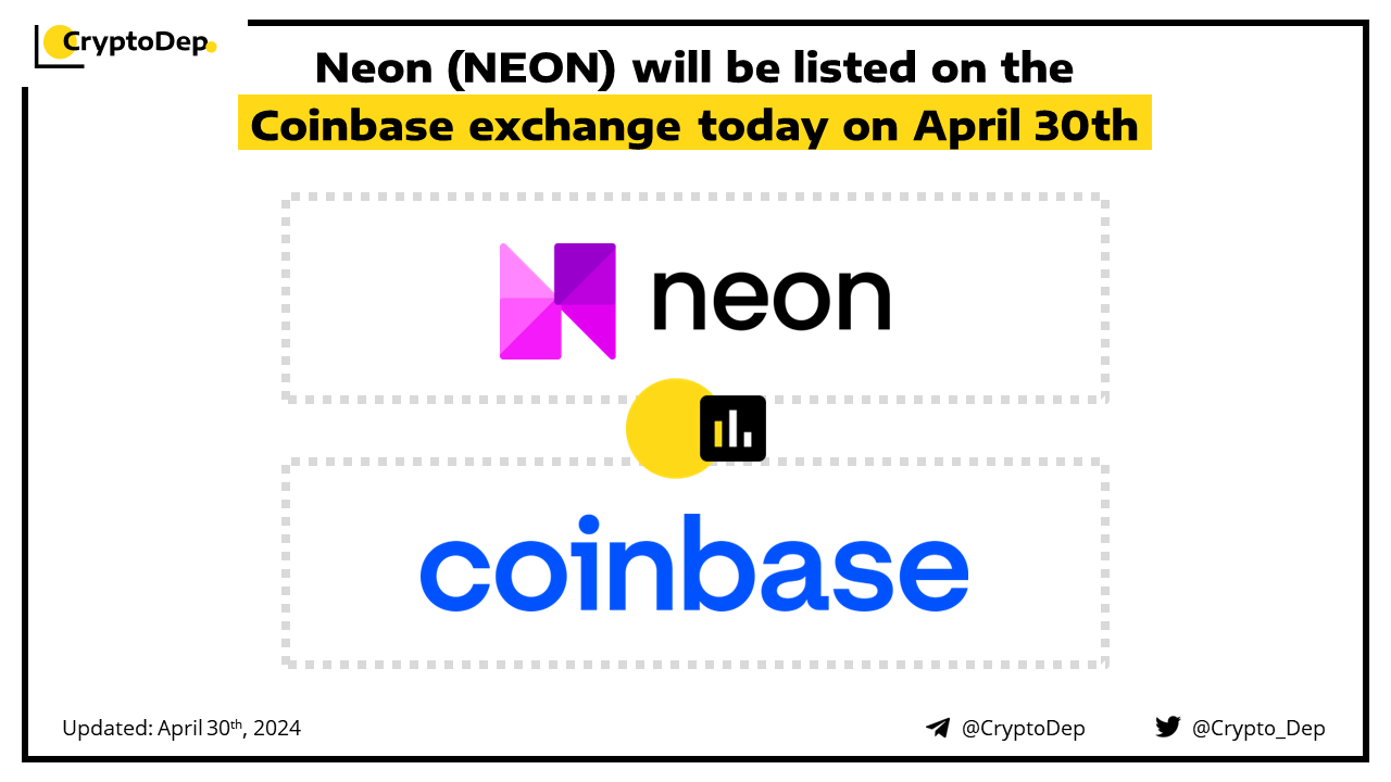 ββNeon (NEON) will be listed on the Coinbase exchange today on April 30th