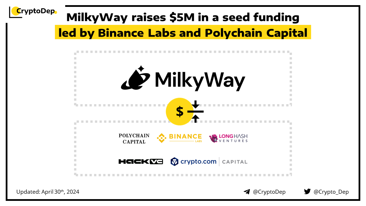 MilkyWay, a Celestia liquid staking protocol, has announced the closure of its $5M seed investment co-led by Binance Labs and Polychain Capital. Additional round participants included Hack VC, Crypto.ΡΠΎm Capital and LongHash Ventures. MilkyWay is also planning to launch its own token and conduct an airdrop in the coming months.