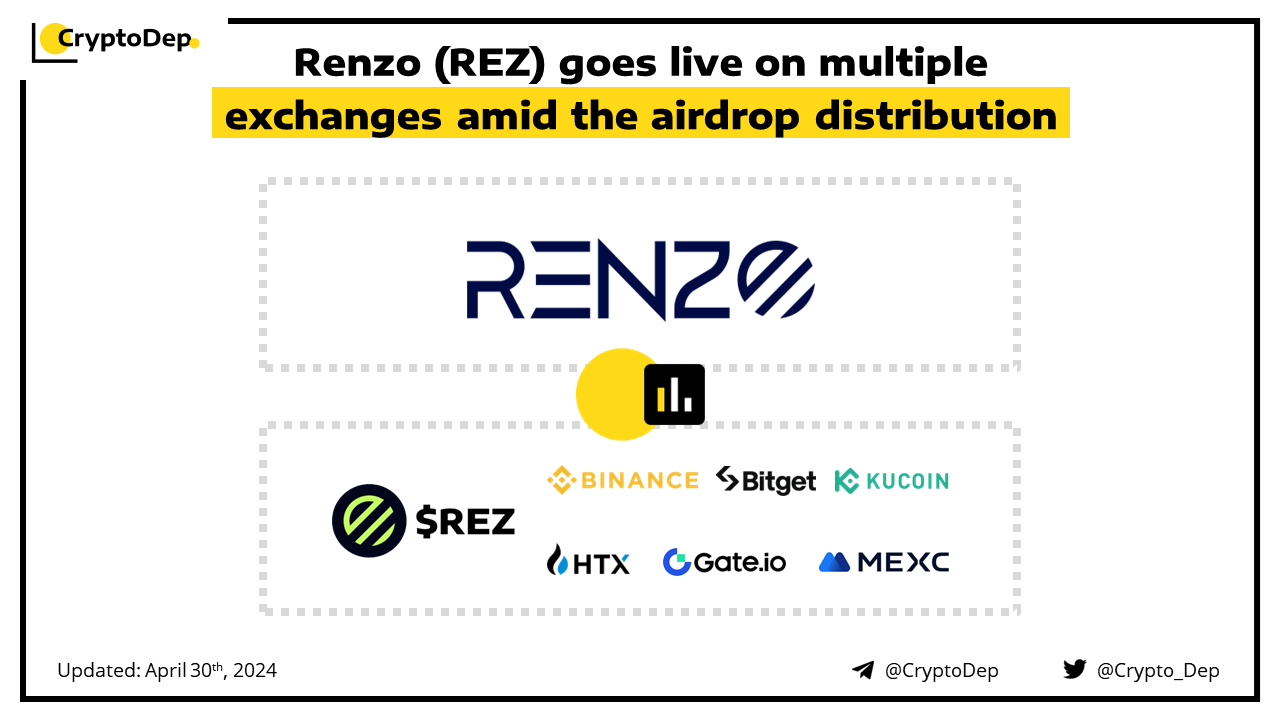 ββRenzo (REZ) goes live on multiple exchanges amid the airdrop distribution