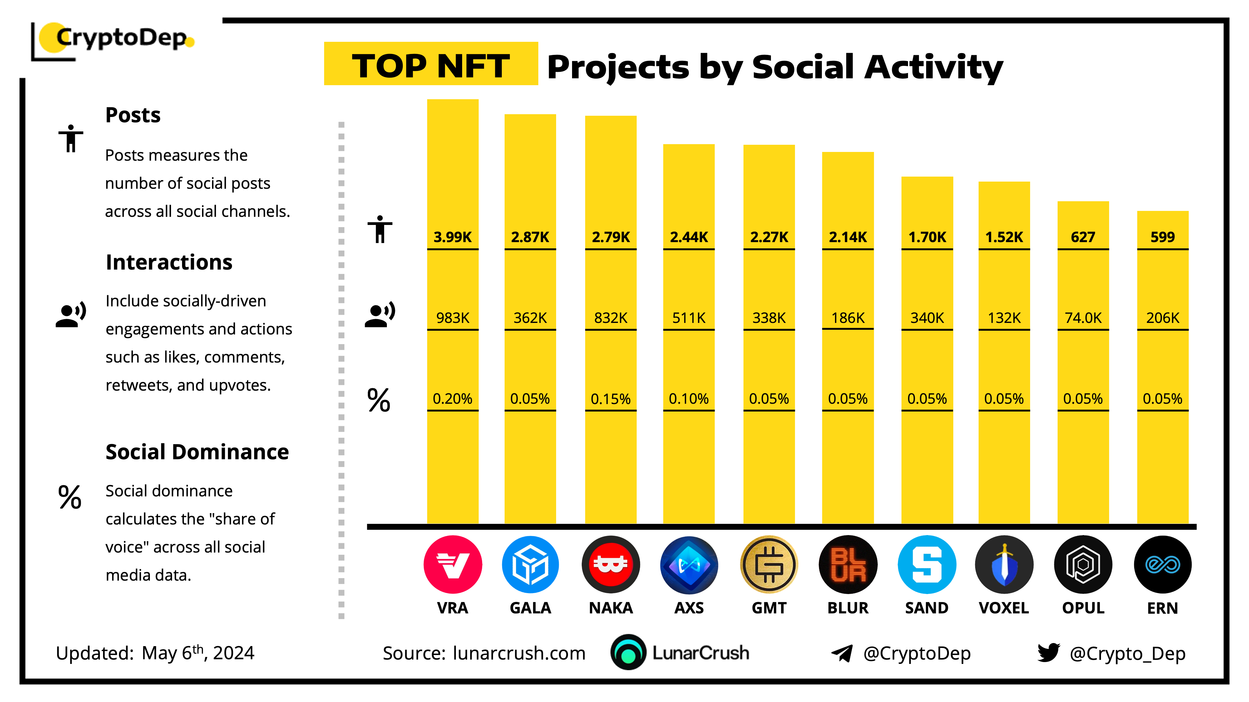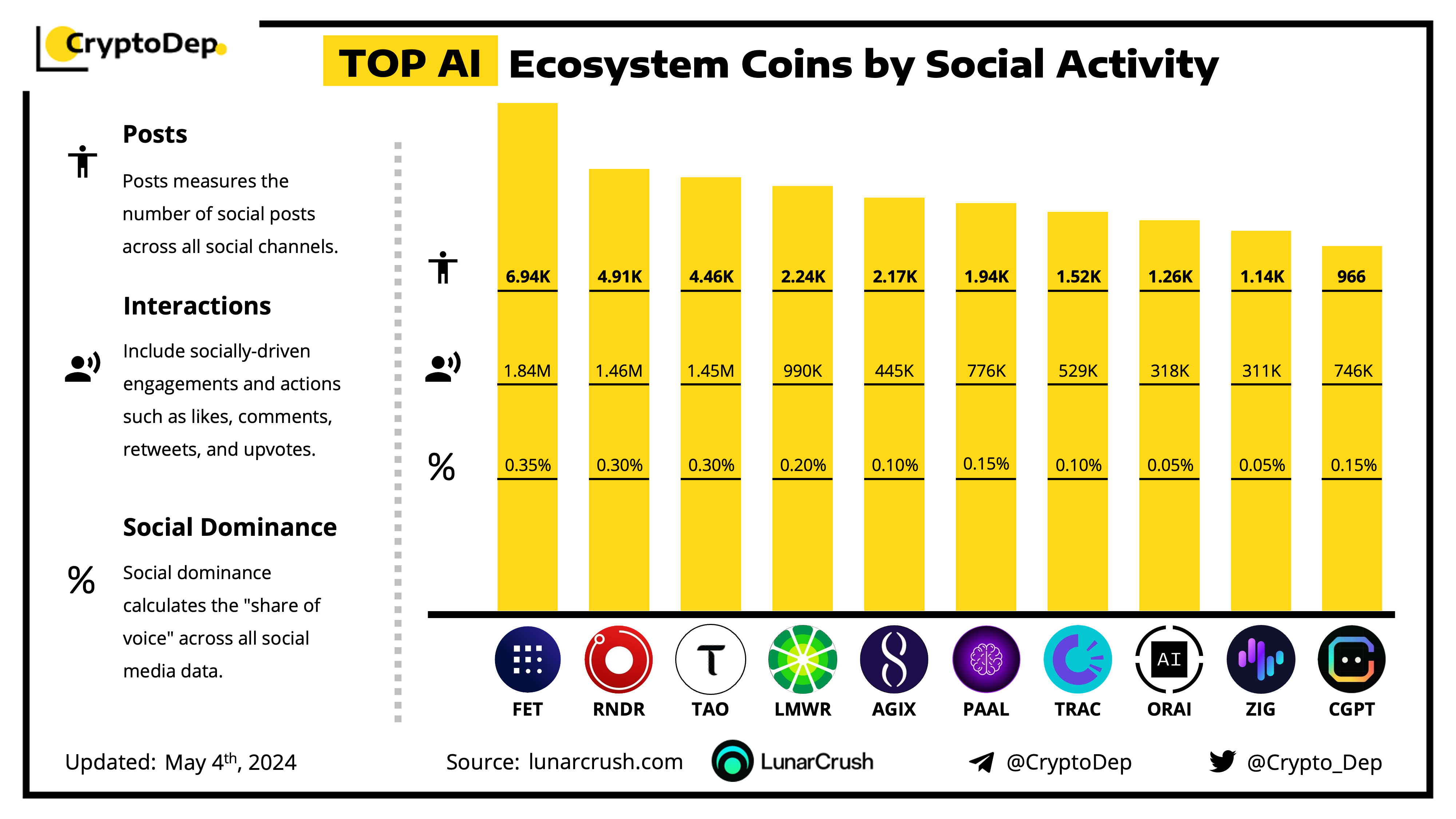 Interactions include socially-driven engagements and actions such as likes, comments, retweets, and upvotes.
