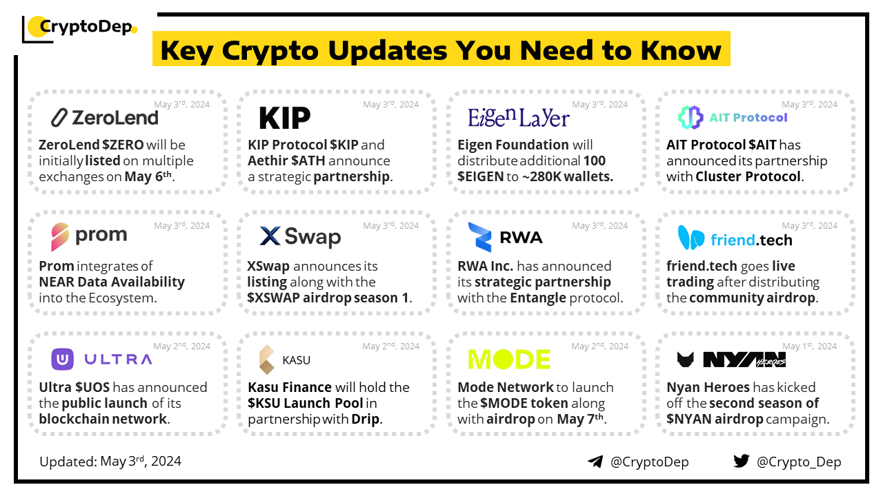 Trading for the $ZERO token will go live on OKX, ByBit, Kucoin, and Bitget on May 6th, at 8:00 AM UTC. The project has allocated 15-17% of $ZERO total token supply to airdrop for protocol's suppliers and borrowers. ZeroLend is a lending protocol on zkSync, Manta, Blast, Linea and Ethereum with over $200M in total value locked.