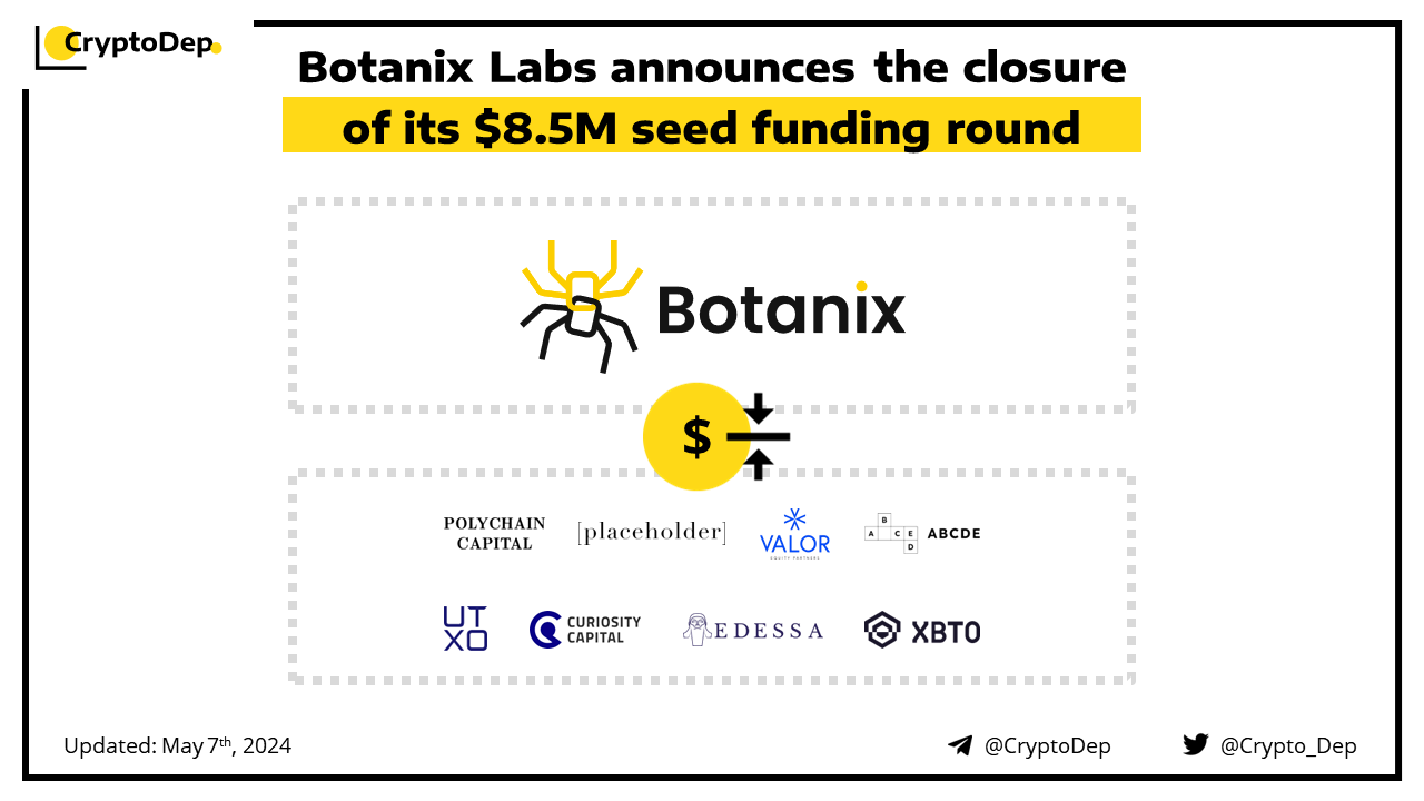 Botanix Labs has raised a $8.5M seed round to build the Spiderchain, a Bitcoin-native Layer 2 primitive with full EVM equivalence. The round was backed by Polychain Capital, Placeholder Capital, Valor Equity Partners, and ABCDE. Following a previously unannounced $3M pre-seed round backed by UTXO, Curiosity Capital, Edessa Capital, and XBTO Ventures, Botanix Labs has now raised $11.5M in total funding.