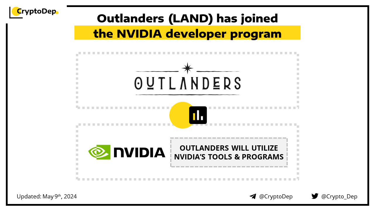 Outlanders announces that it has joined NVIDIA's developer program. Jointly with Nakamoto Games, the project will utilize Nvidia's repository of tools, programs, and training to enhance the products within its MMORPG ecosystem. Outlanders is an MMORPG in the Nakamoto Games ecosystem, that combines GameFi and Move2Earn.