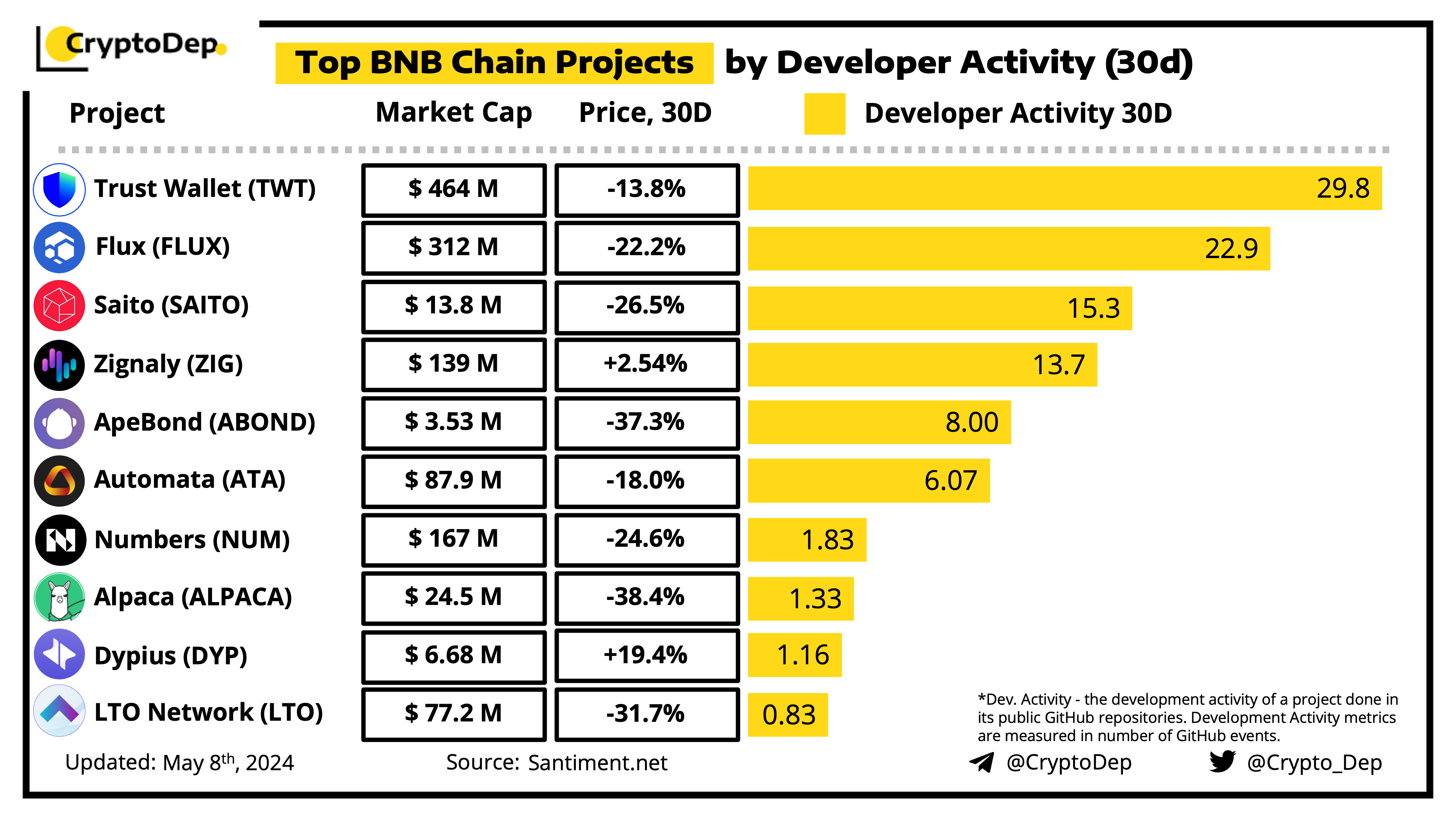 ββTop BNB Chain Projects by Developer Activity (30d)