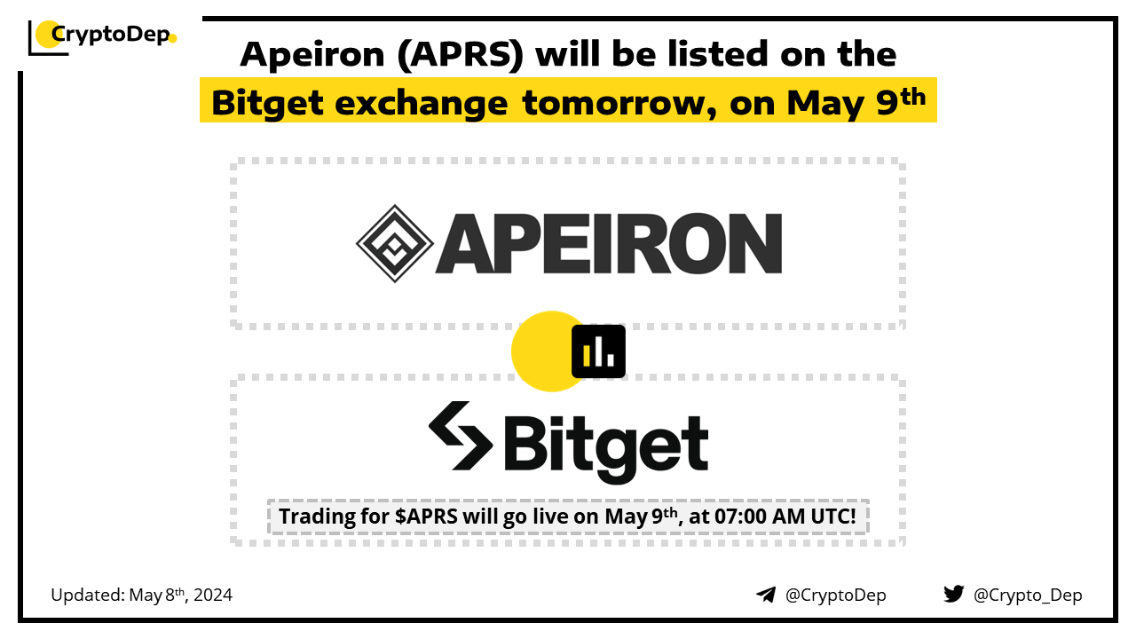 Apeiron (APRS) will be listed on the Bitget exchange tomorrow, on May 9th