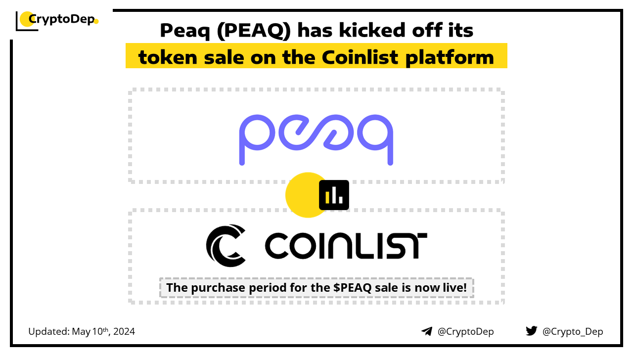 The purchase period for the $PEAQ token sale is now live and will end on May 16th, at 17:00 UTC. The sale will follow an updated Coinlist sale model, providing users with an opportunity to submit a purchase request at any time within the 7-day purchase window.