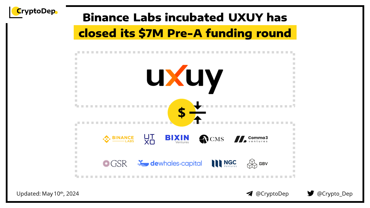 ๐๐ป globenewswire.com/news-release/2024/05/09/2878722/0/en/Binance-Labs-Incubated-UXUY-Secures-7M-Pre-A-Round-Fundraising-Surpasses-10-Million-Total-Funding-Milestone.html