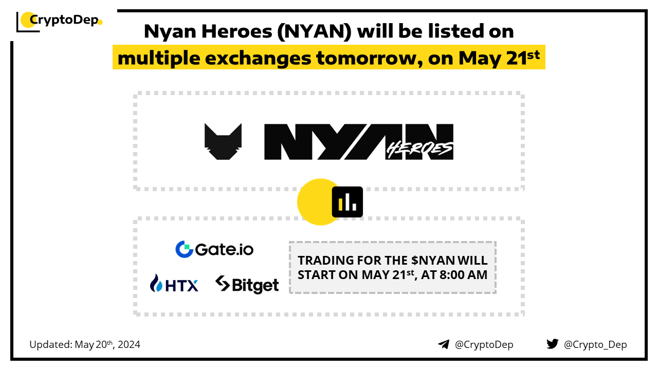 Nyan Heroes (NYAN) will be listed on multiple exchanges tomorrow, on May 21st