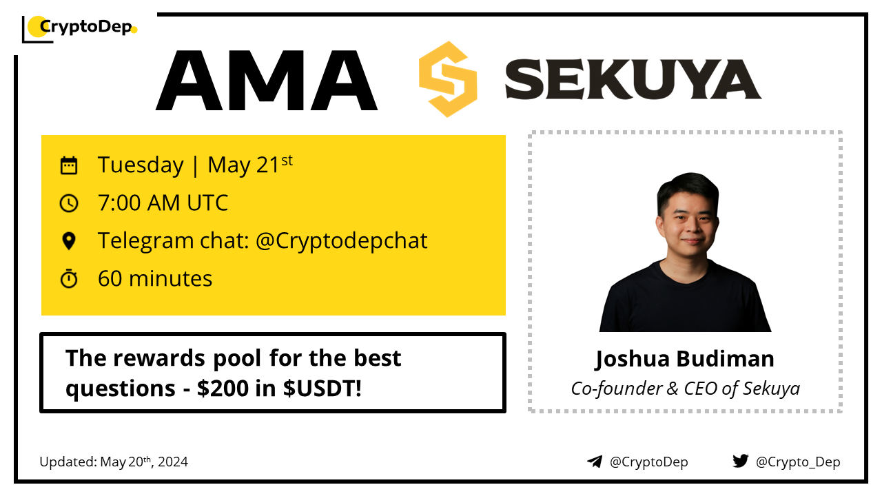 👑 Dear community, CryptoDep will host an AMA with Sekuya $SKYA team on Tuesday, 21st of May, at 7:00 AM UTC in the CryptoDep Chat