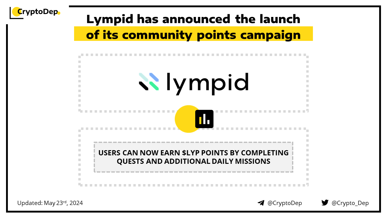 Lympid sets off its points campaign, allowing users to collect points that will grant them the first $LYP points. Participants will need to complete quests, daily X (Twitter) and Telegram missions, and invite referrals to climb up the leaderboard. The project has also opened the waiting list for its upcoming IDO. Lympid is a real-world assets (RWA) platform built for premium investment products backed by 1inch, Chainlink Build, and Fintech House.